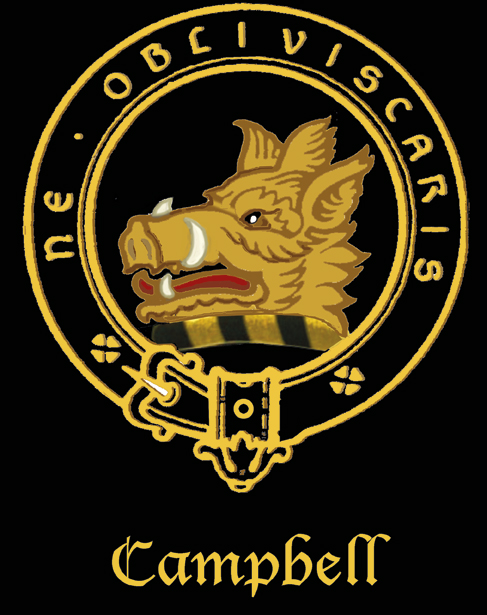 The Boar's Head at the top of the device is the Clan Badge. It is the Crest of the Chief of the Clan Campbell and part of his Coat of Arms. The Boar's Head surrounded by a Buckle signifies a Clan member. Only the Chief may use the Boar's Head standing alone.